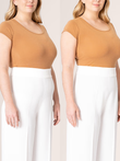 Alisa o abdômen, reduz a aparência de gordurinhas e evita marcas indesejadas sob vestidos, saias ou calças justas. -