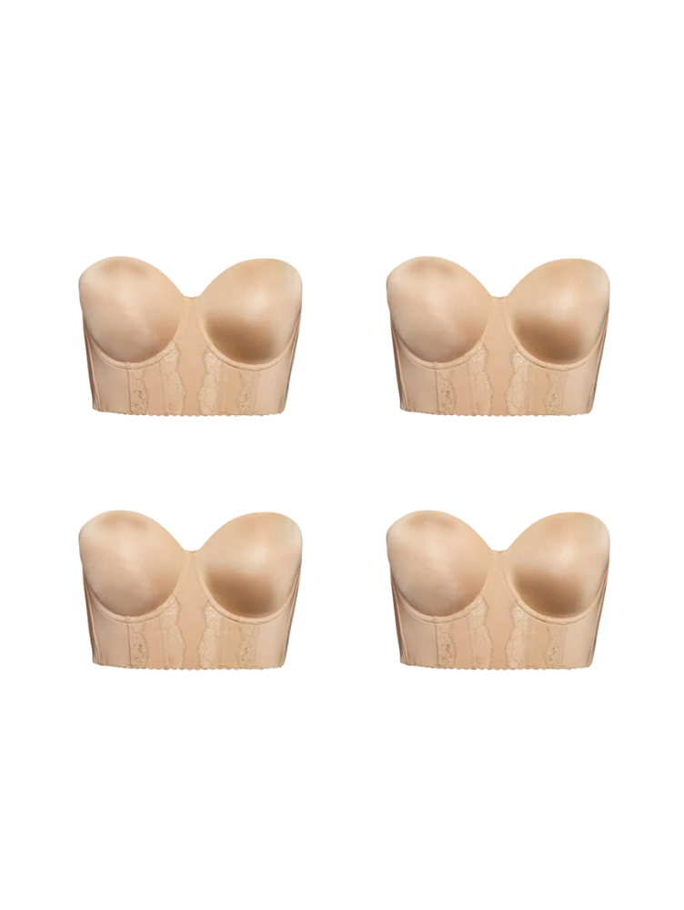 Este sutiã tomara que caia com cobertura nas costas e abaixo dos braços, permanece firme no lugar, mesmo com movimentos intensos, graças à sua faixa ajustada e estrutura de suporte.